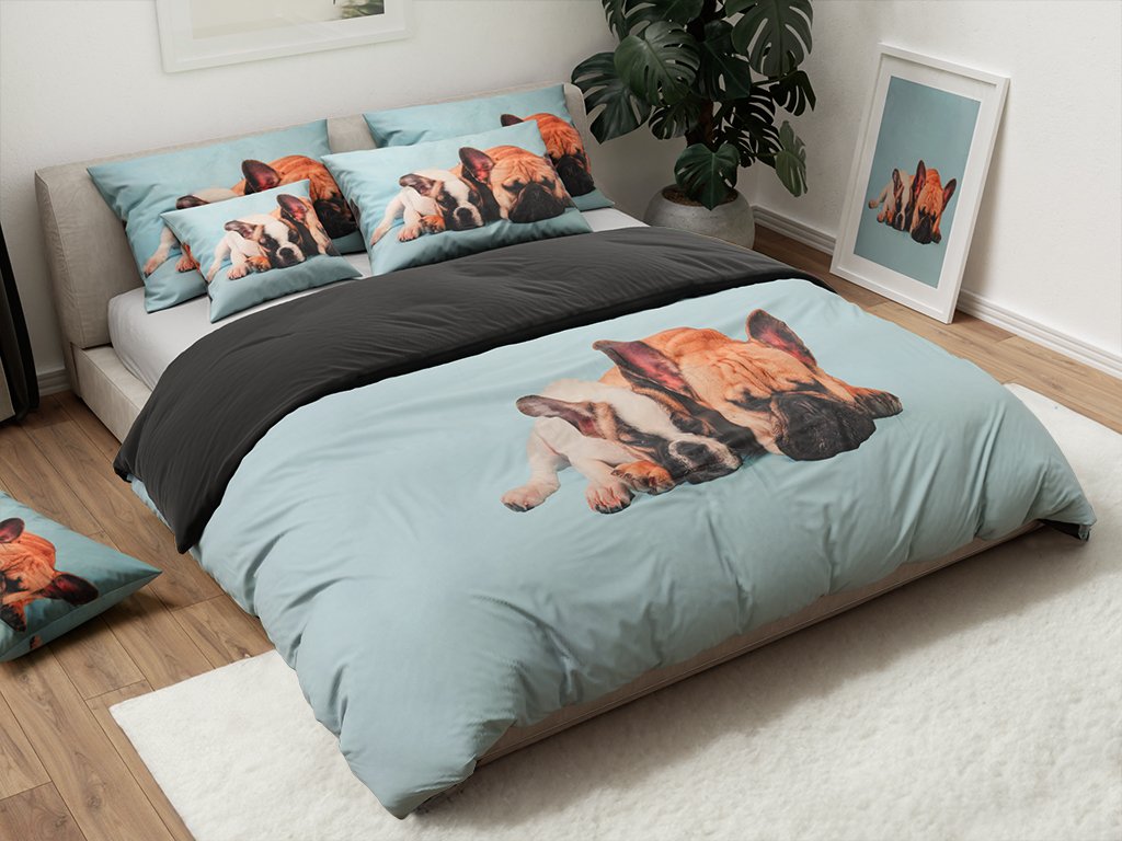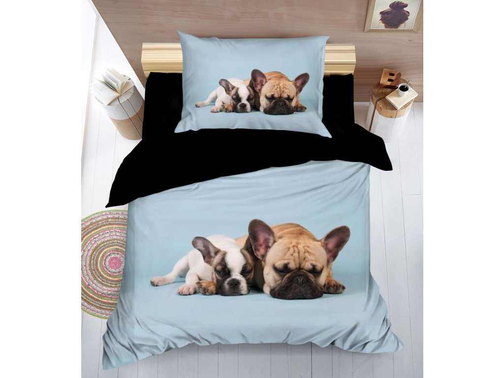 3D posteljnina BULDOG iz mikrovlaken, modra