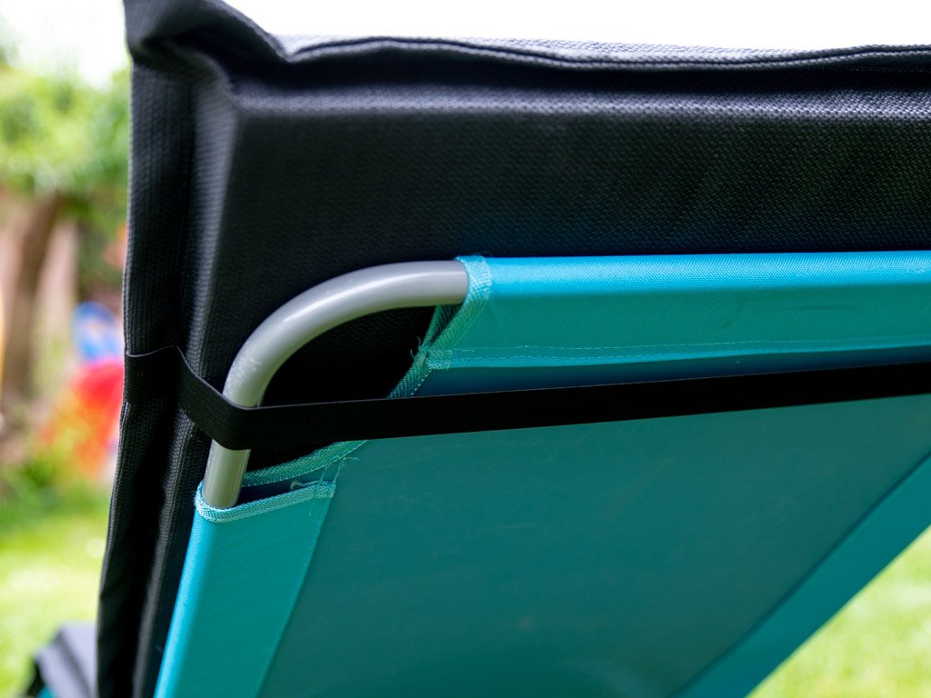 Sedežno blazino preprosto pritrdite na ležalnik s pomočjo elastike in vrvic. Vrvice in elastika so trdno prišite na obeh straneh sedežne blazine. Gumijaste vrvice zagotavljajo popolno prileganje, pa tudi enostavno odstranjevanje.
