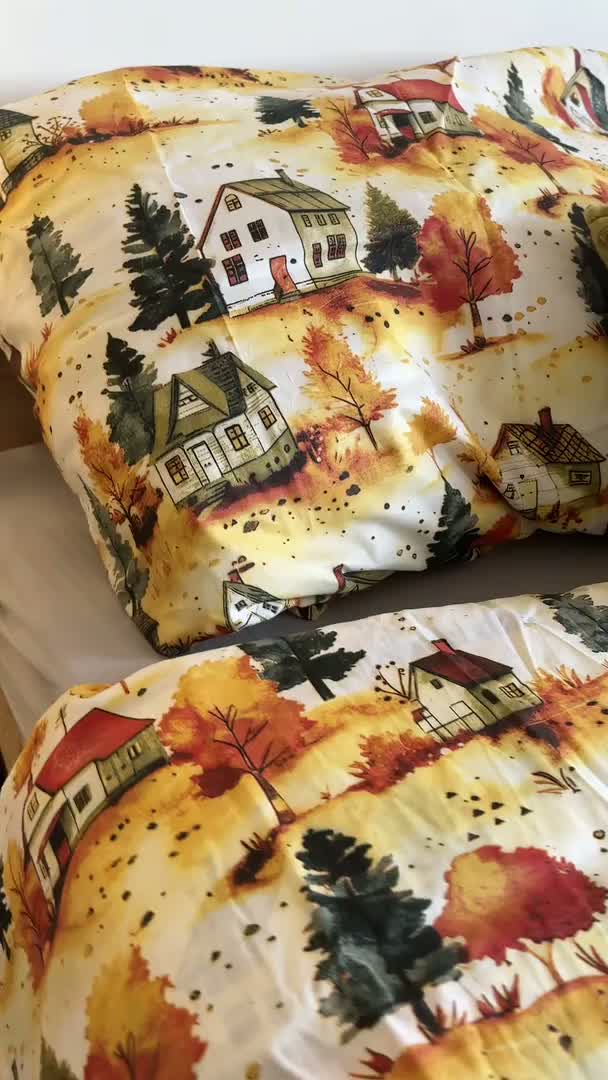 Bombažna posteljnina AUTUMN VILLAGE pisana