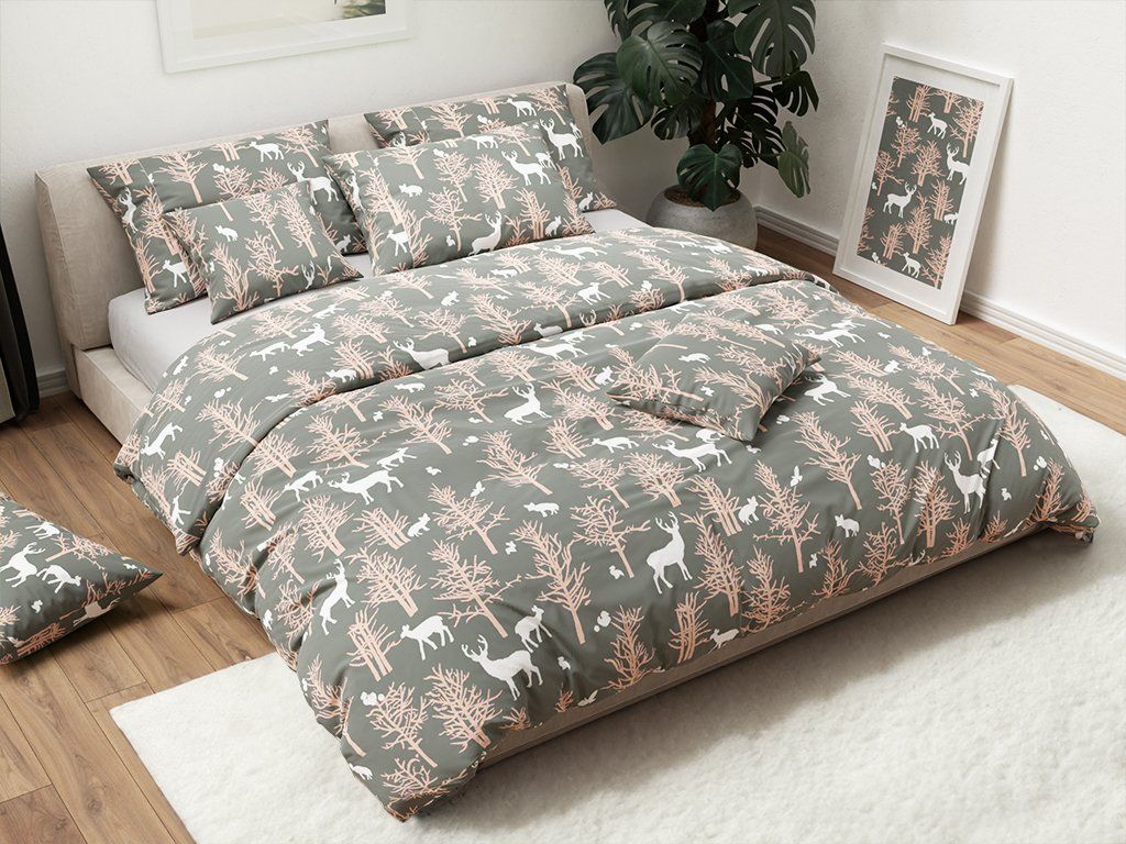 Bombažna posteljnina AUTUMN WOOD siva