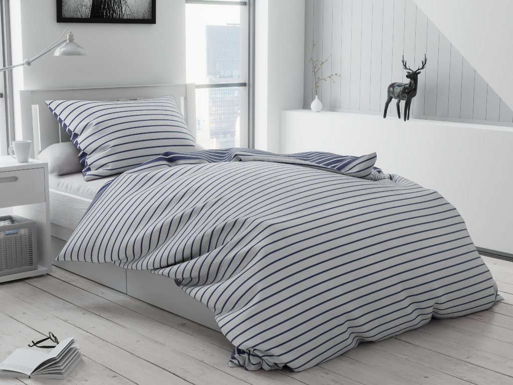 Nikoli zastarele in elegantne črte imajo svoje priljubljence pri široki populaciji. K vaškemu ali podeželskemu stilu neomajno spada črtasta posteljnina modre barve. Ne bojte se! Črte so moderne tudi v stanovanjih, kjer delujejo elegantno in okusno. Črte simbolizirajo notranjo harmonijo, novo energijo in boljše spanje. Odtenki črne, bele ali sive delujejo skrivnostno in krepijo medsebojne odnose.