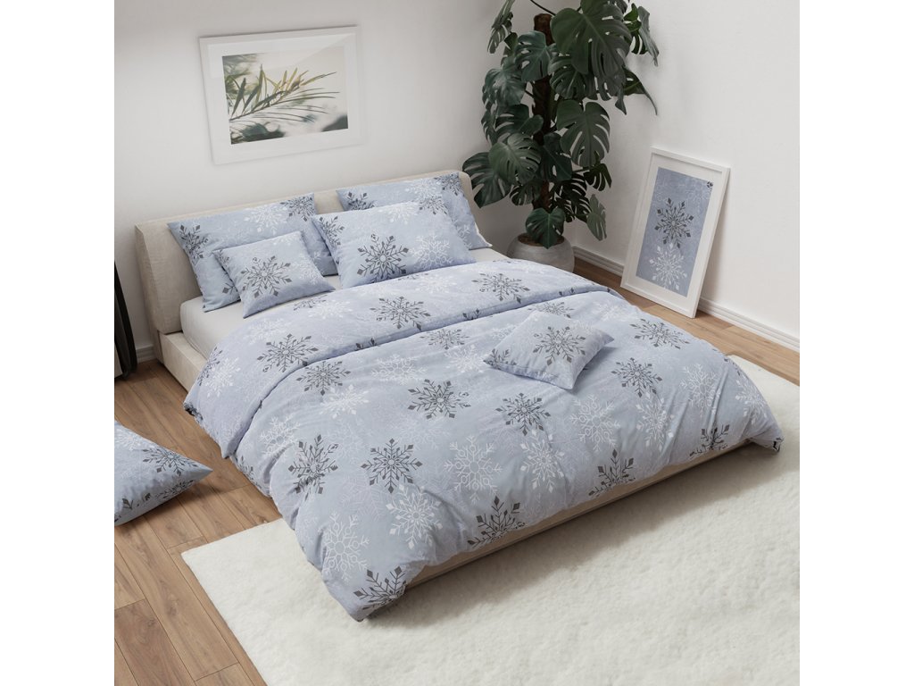 Bombažna posteljnina CHRISTMAS SNOWFLAKES siva