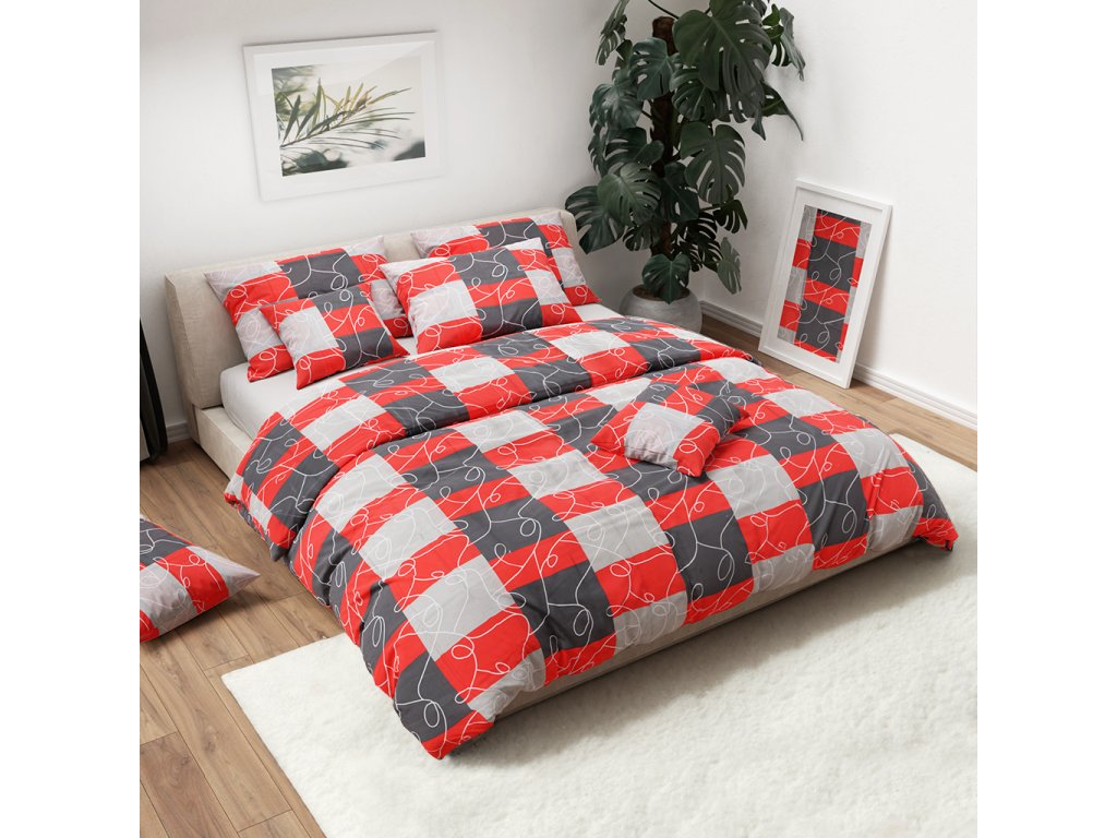 Bombažna posteljnina Kvadrati rdeča