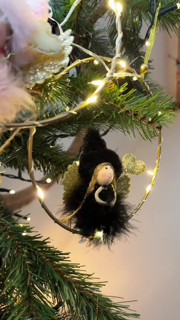 LED viseči črni angel MOONY, 16 cm