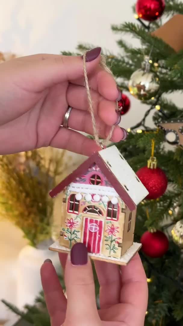 Viseča božična hišica CHRISTMAS HOUSE lesena, več različic