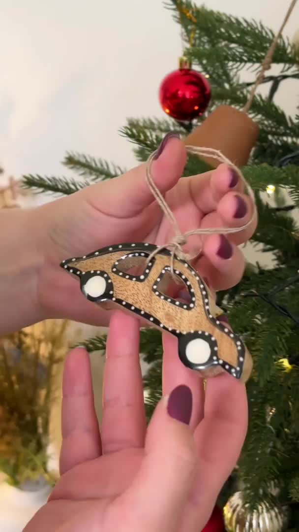 Viseči okrasek iz mangovega lesa AVTO rjav