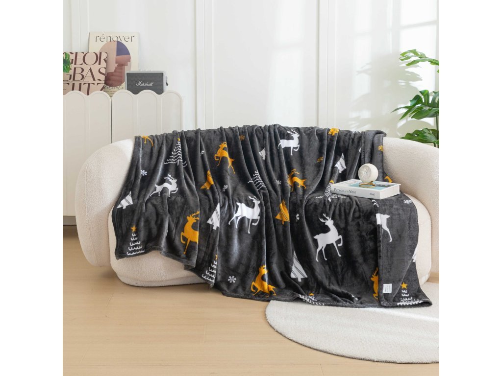 2x Temno siva božična mikroplišasta deka WHITE TREES 150x200 cm