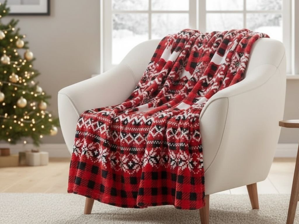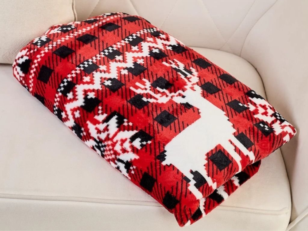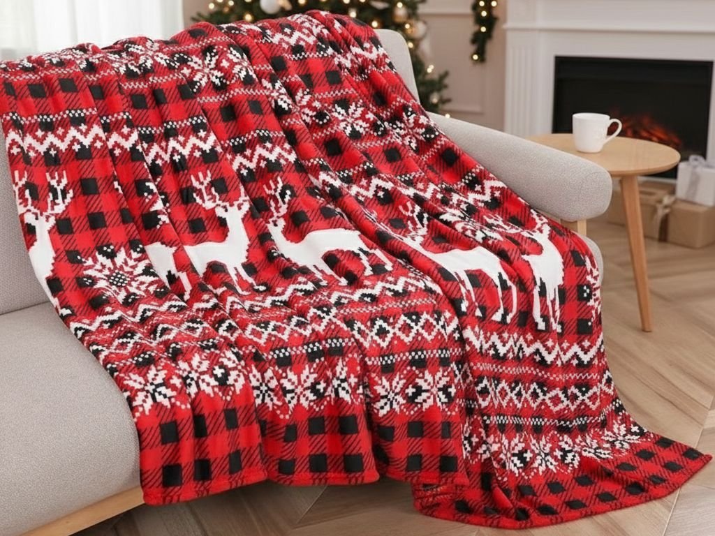 Božična mikropliš odeja NORDIC DEERS, rdeča
