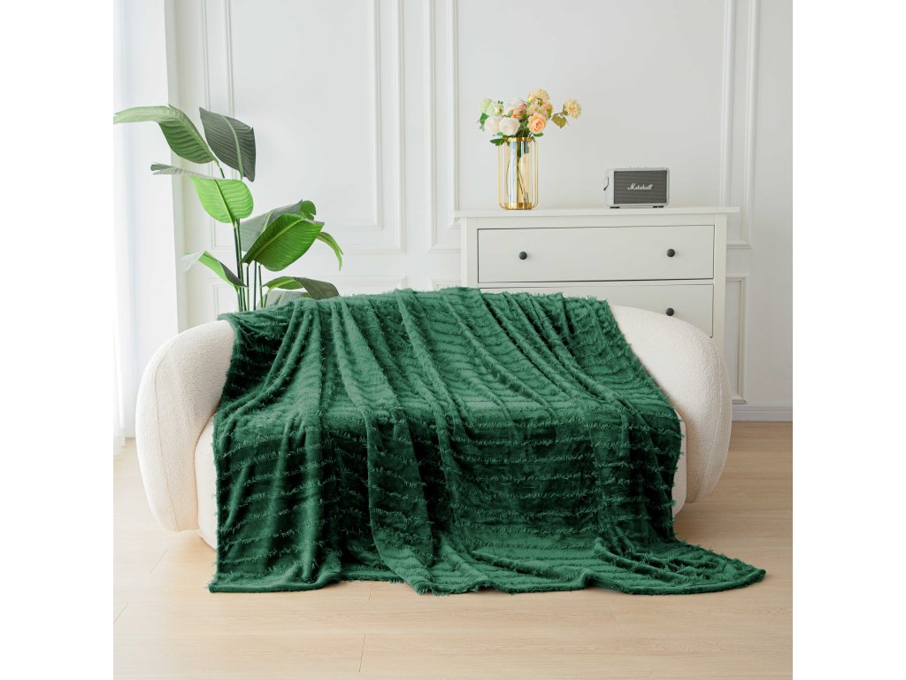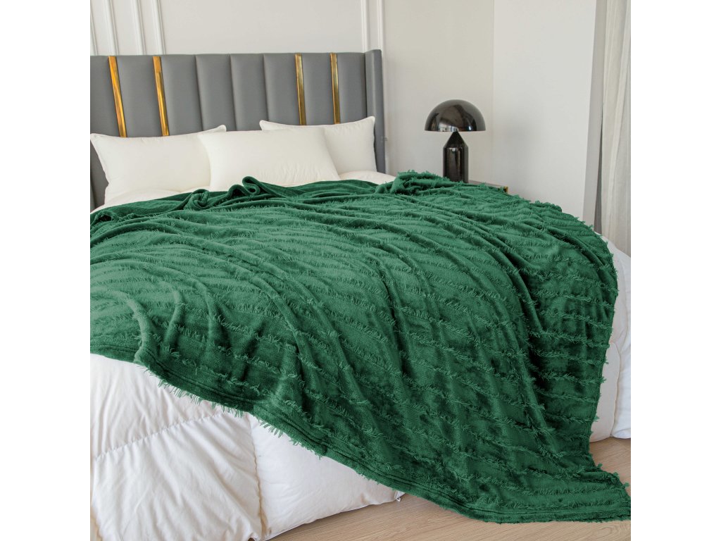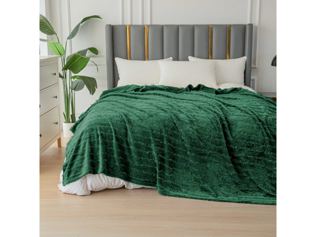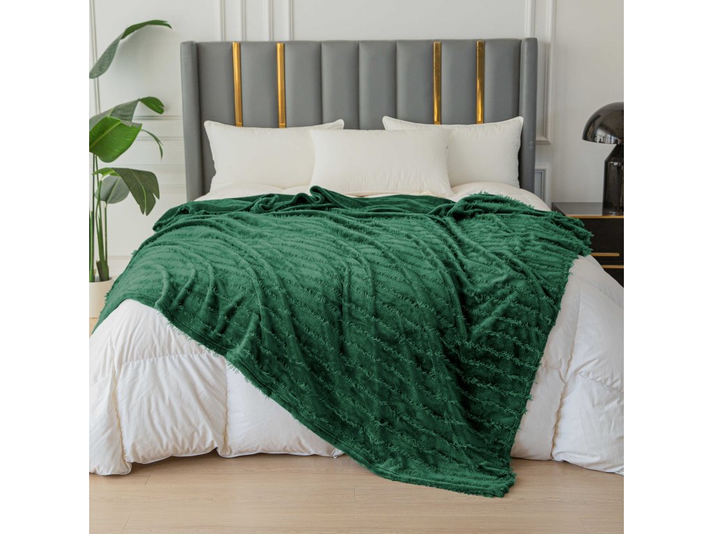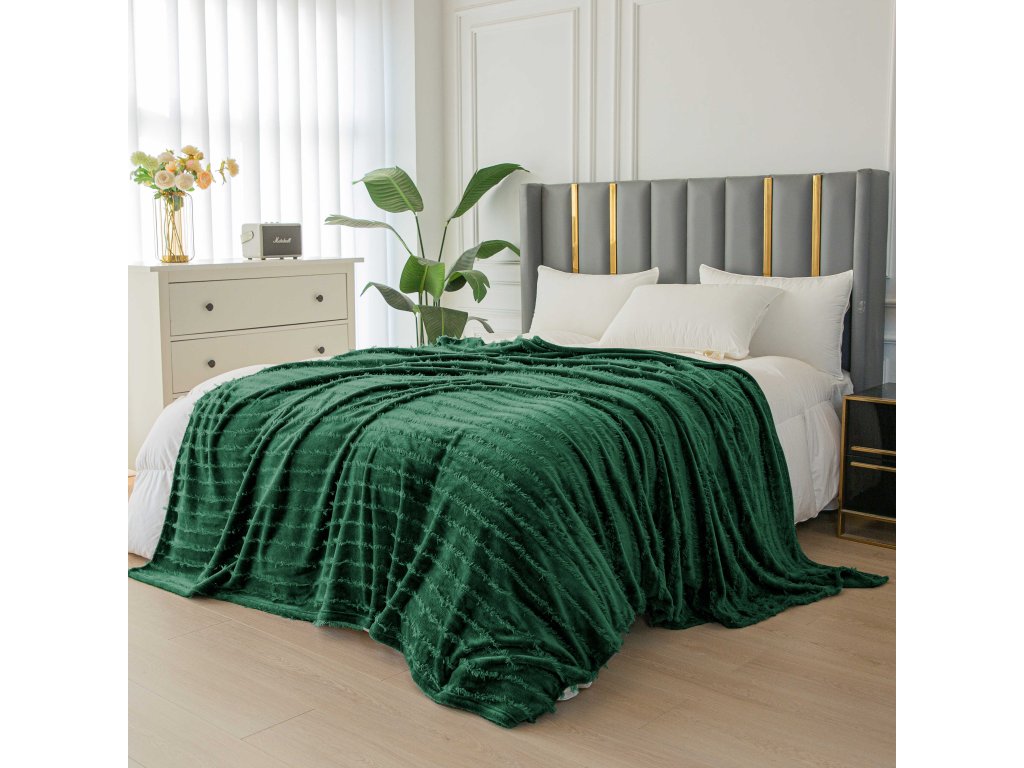 Mikropliš deka z vzorcem PRESTIGE temno zelena