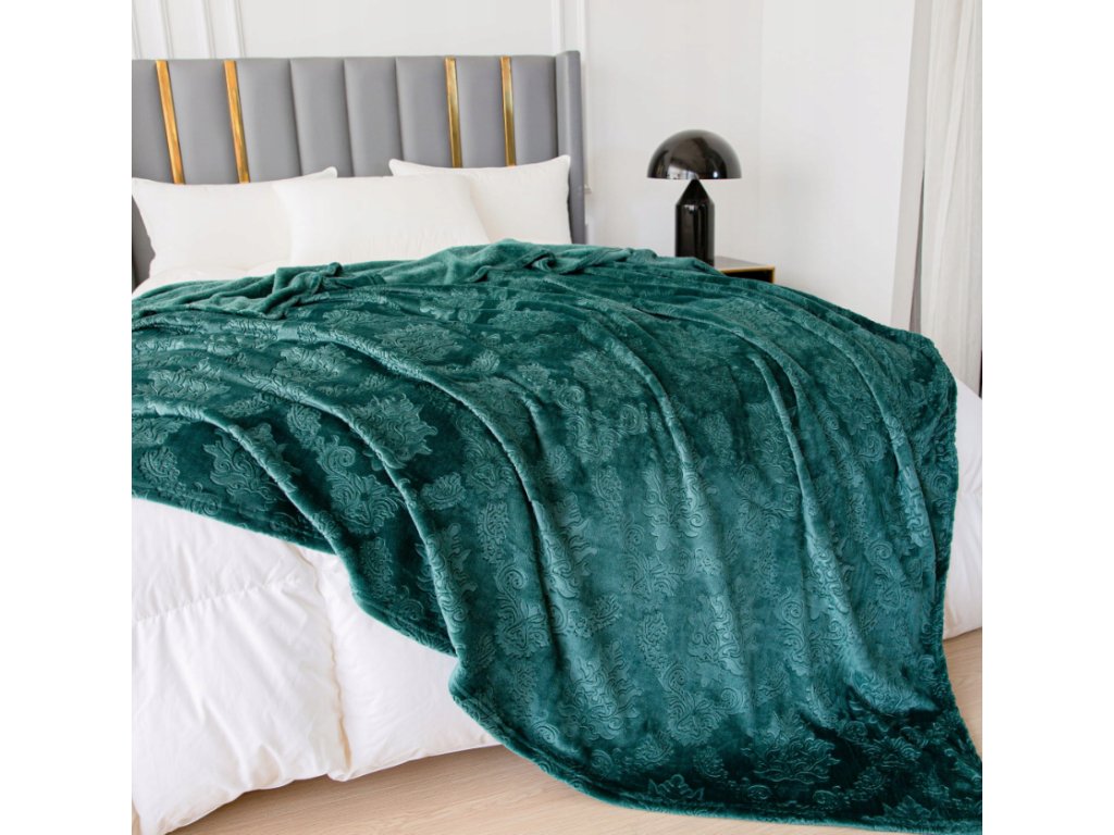 Mikropliš deka z vzorcem VELORIA temno zelena