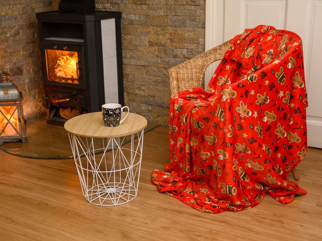 Rdeča božična mikropliš deka BOŽIČ, 180x200 cm