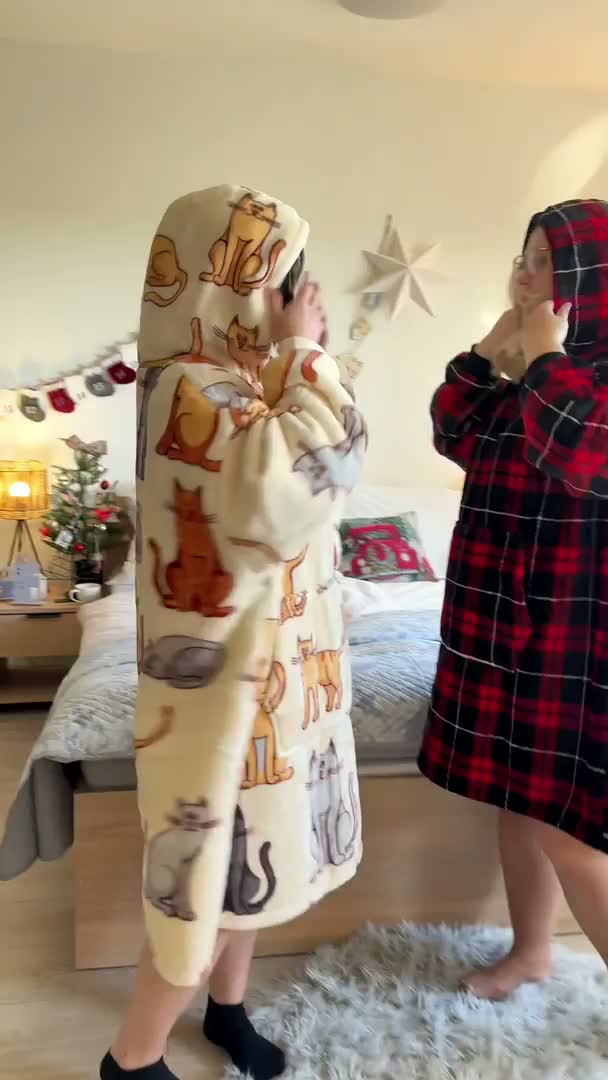 Topla odeja z imitacijo ovčje volne z rokavi in kapuco ALBURY, rdeča
