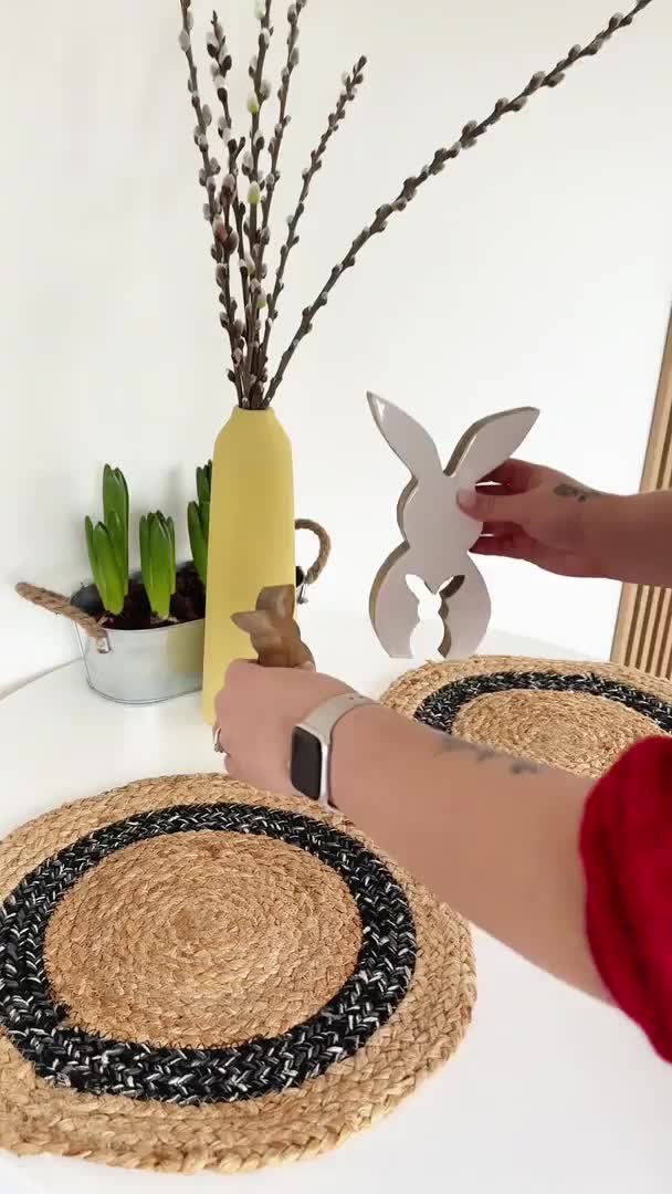 Ta set lesenih velikonočnih dekoracij prinaša v vaš dom edinstven pridih naravnega sloga. Minimalističen dizajn iz mangovega lesa je idealen ne le za praznično obdobje, temveč tudi kot stilski dodatek v sodobni notranjosti. Dve med seboj ujemajoči se figuri zajčkov odlično izstopata na polici, klubski mizi ali v sezonskem aranžmaju. Ustvarite si prijetno vzdušje, ki bo slavilo čarobnost pomladnih dni.