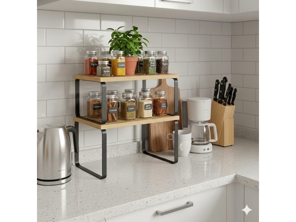 V kuhinji odlično služi kot prostor za shranjevanje hrane ali posode, v kopalnici za organizacijo kozmetike in toaletnih potrebščin ter v dnevni sobi ali pisarni za razstavljanje dekoracij ali knjig. Zaradi svojega preprostega in elegantnega dizajna so police primerne za sodobne in tradicionalne interiere. Lesen dekor v kombinaciji s črnimi kovinskimi elementi doda vašemu domu prijeten in svež videz, ki se zlahka uskladi z drugimi barvami in materiali.
