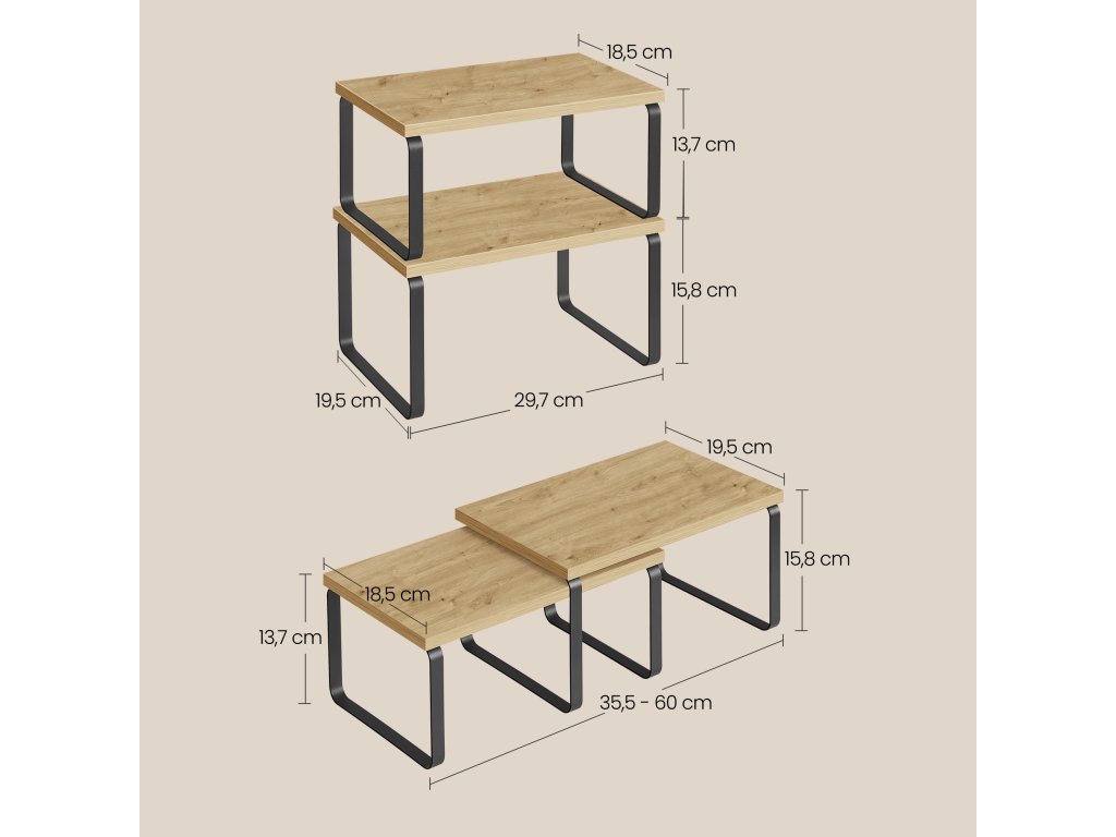 Set 2 kuhinjskih polic MARZO, hrast artisan/črna