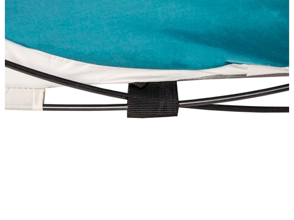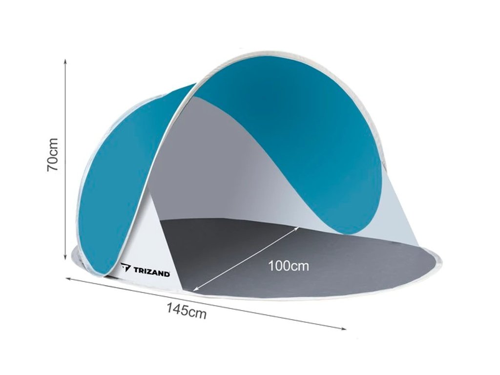 Nizka teža omogoča enostavno prenašanje in zaradi praktičnega etui s ročajem je kot ustvarjen za počitnice ali izlet k vodi. Postavitev in razstavljanje šotora je preprosto in hitro. Ko ga vzamete iz etuija, se sestavi sam v nekaj sekundah. Konstrukcija plažnega šotora je narejena iz kakovostnega steklenih vlaken, medtem ko je prevleka iz poliestra, ki je odporen proti vodi in sončnemu sevanju.