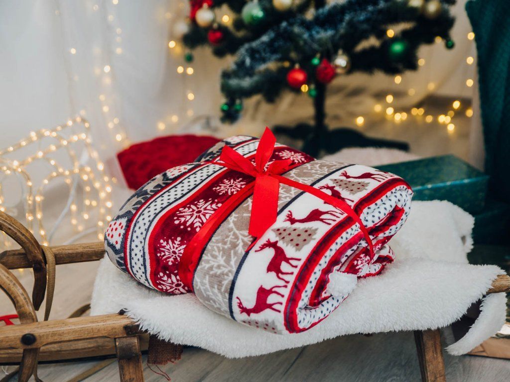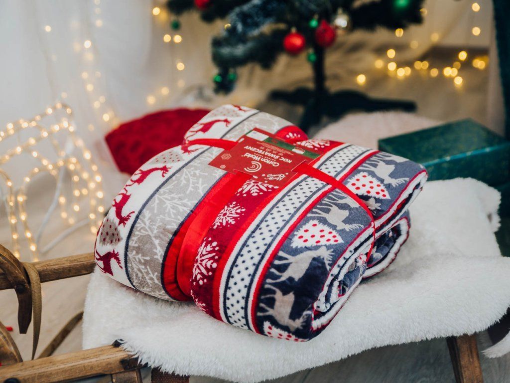 2x božična rdeče-bela ovčka odeja iz mikropliša WINTER DELIGHT 160x200 cm
