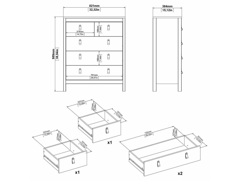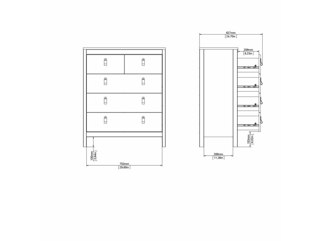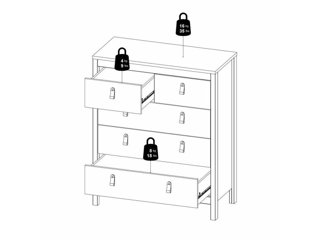 Bela komoda SALOMO s 5 predali