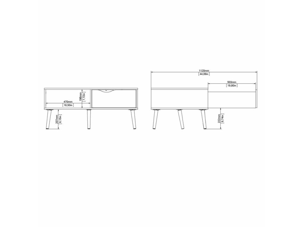 Bela klubska mizica OSLO 75384 s ploščo v hrastovem dekorju