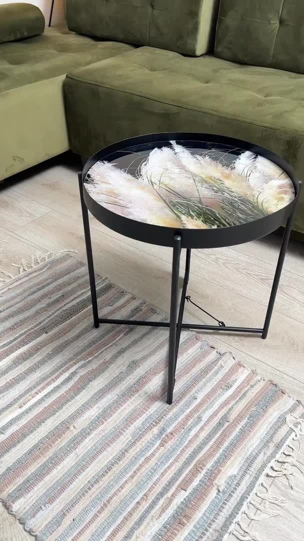 Vzorec okrasnih trav na črnem ozadju, popestren z nežnimi bež poudarki, ustvarja elegantno in harmonično barvno kombinacijo. Ta eleganten dizajn je idealen za dopolnitev s svečami, rožami in drugimi okraski, ki bodo poudarili njegovo prefinjenost. Klubska mizica Lyria tako postane ne le praktičen, temveč tudi izrazito estetski element vsakega interierja.