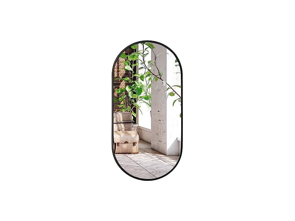 Ovalno ogledalo za na steno OLVANI 80x40 cm s črnim okvirjem