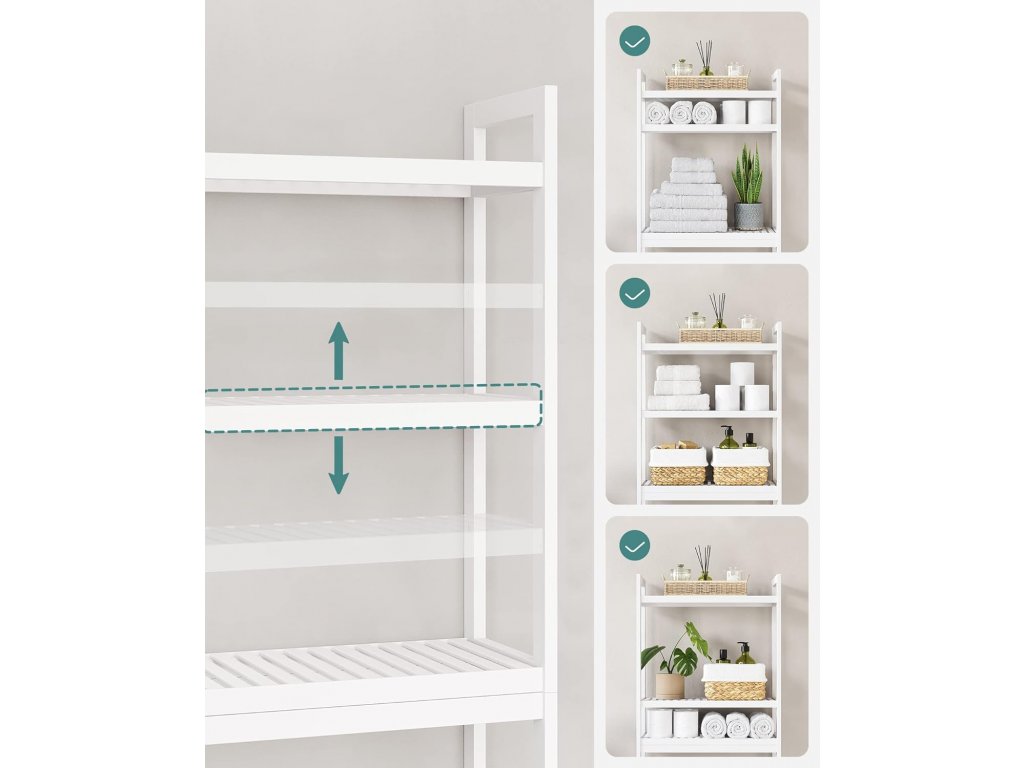 - Spodnjo letev je možno namestiti na dveh različnih višinah (10 in 16 cm) tako, da lahko polico postavite za straniščno školjko