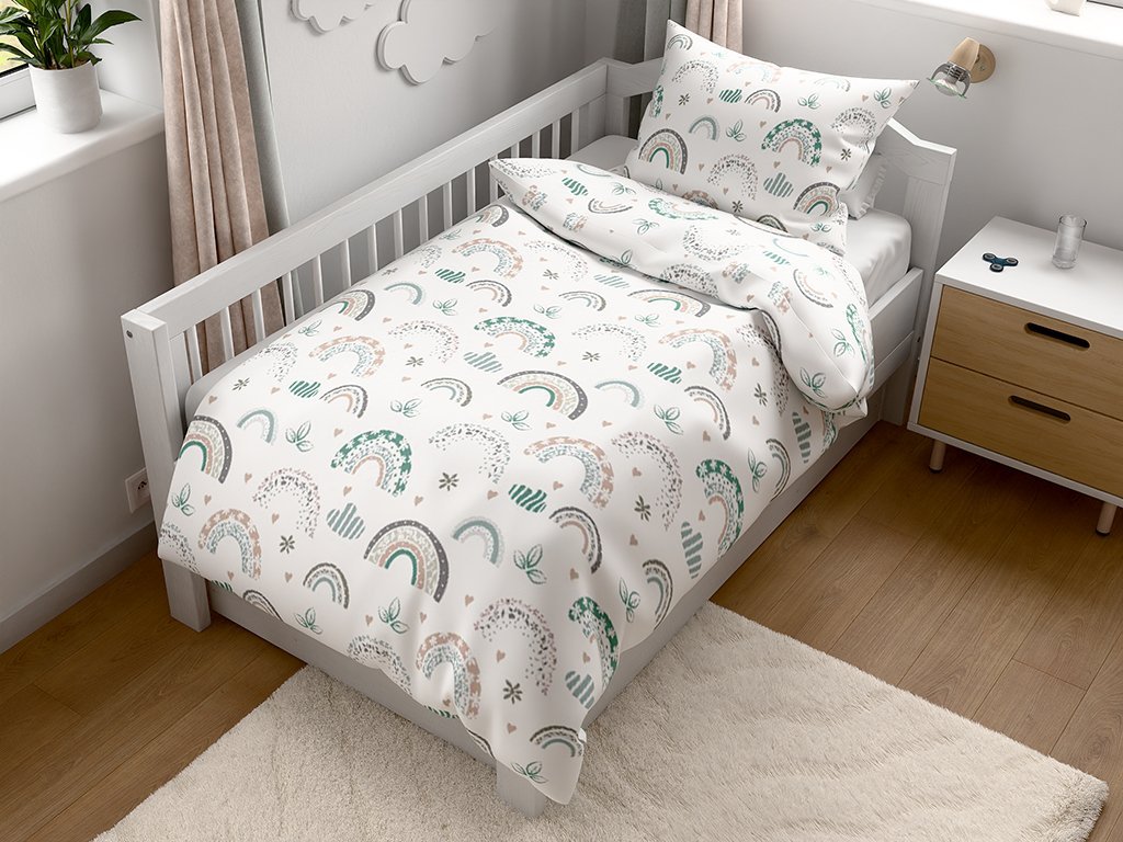 Kreponska posteljnina za otroško posteljico Renforcé RAINUBI bela