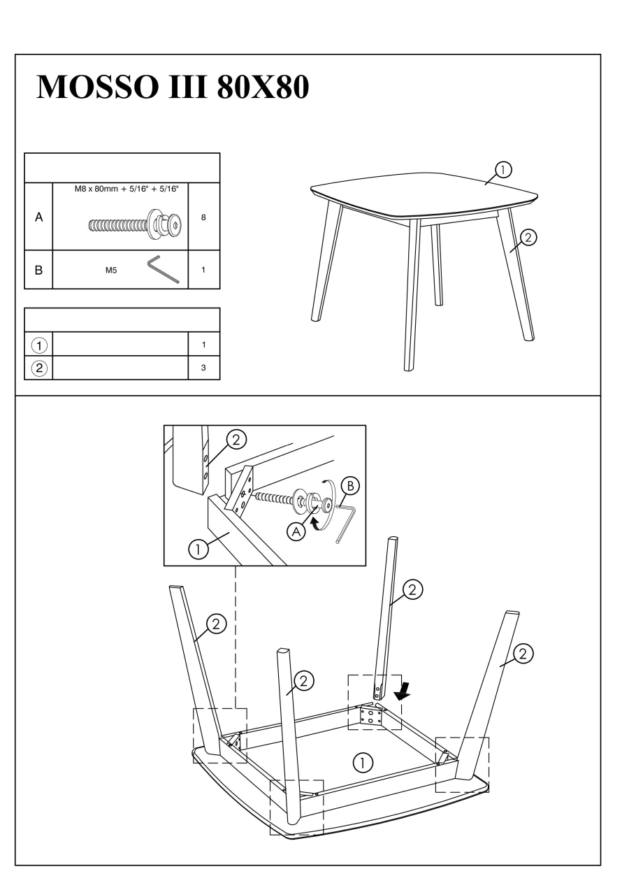 Jedilna miza z leseno ploščo v dekorju hrast MOSSO III 80x80