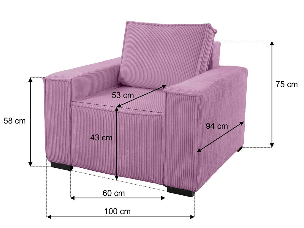 Kontrukcija je narejena iz bukovega in borovega lesa. Dodatni material okvirja fotelja je iverica, vezan les in sololit.