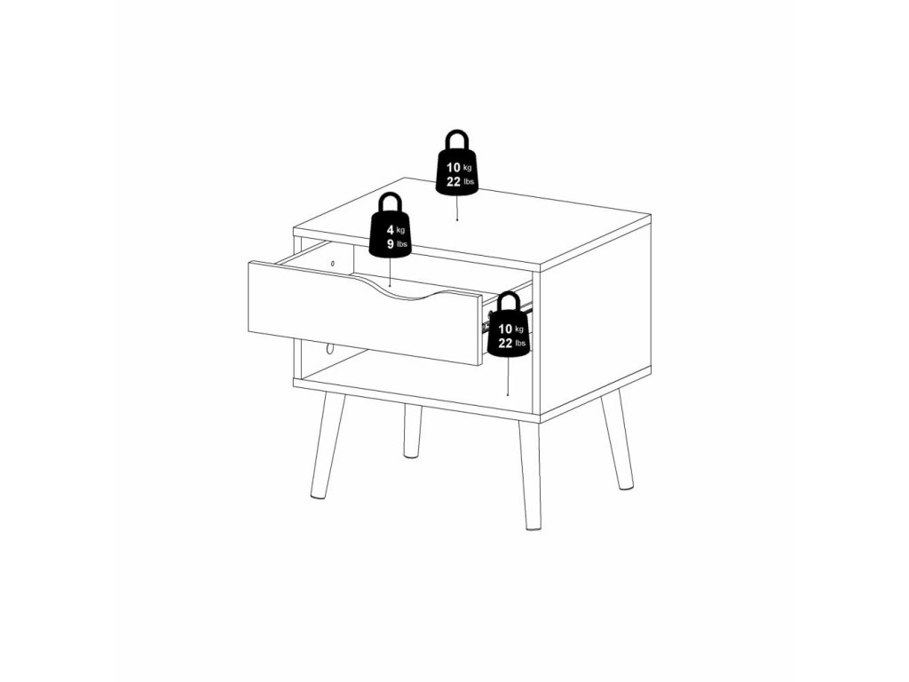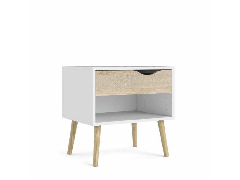 Bela nočna omarica z dekorjem hrast sonoma OSLO 75394