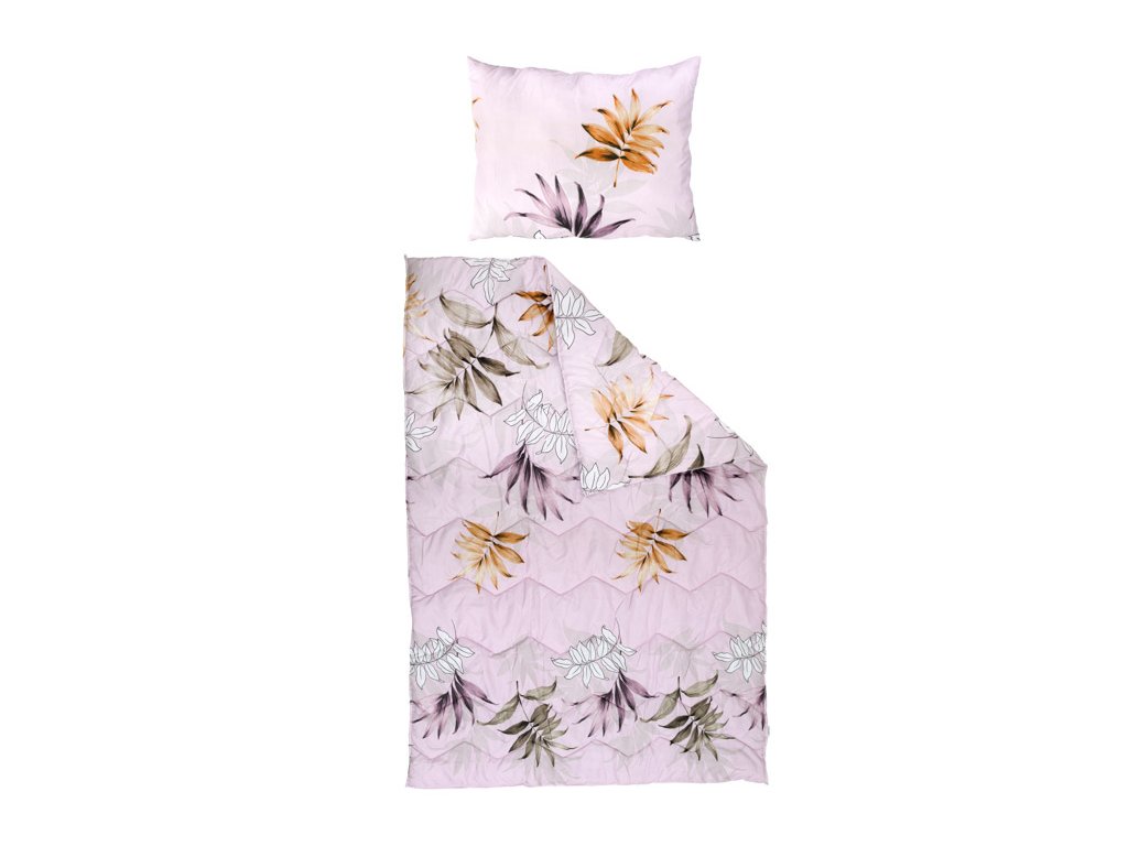 Celoletna prešita odeja 140x200 cm z blazino LISTI roza 70x90 cm