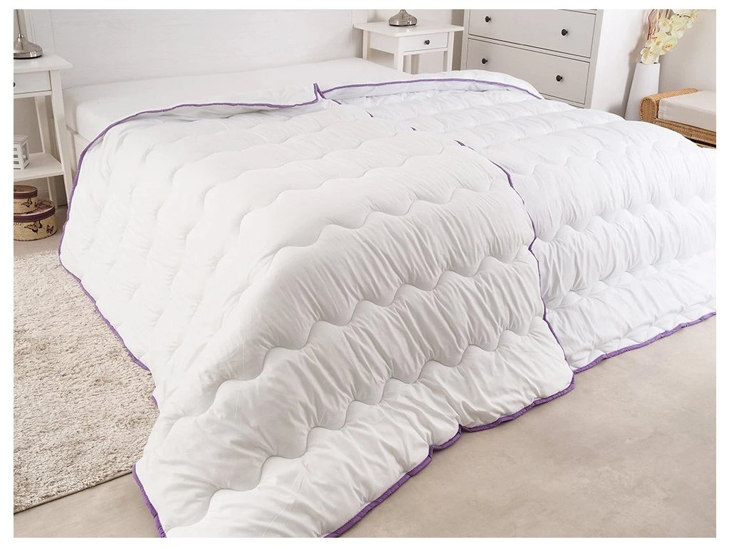 Celoletna prešita odeja 140x200 cm s povštrom BELLA LAVENDER 70x90 cm, bela