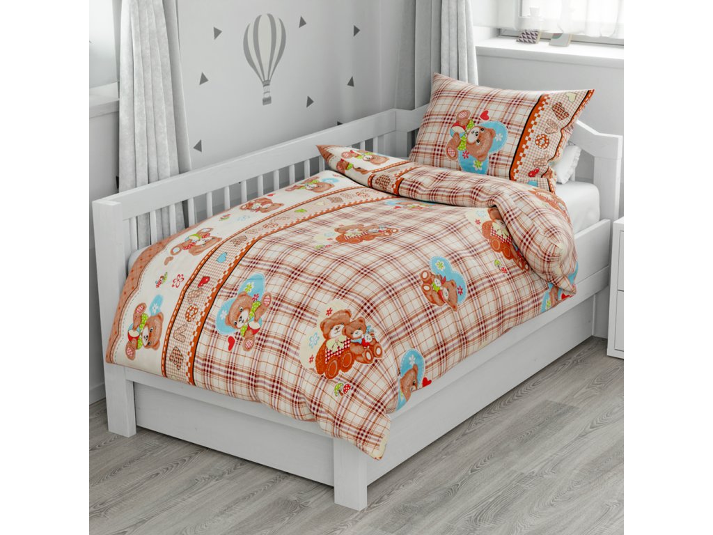 Bombažna posteljnina za posteljico MEDVEDEK LOVE rjava