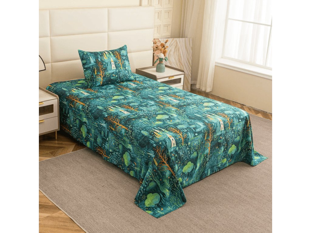 Rjuha iz mikrovlaken 140x240 cm in prevleka za vzglavnik 50x70 cm NEON FOREST, barvna