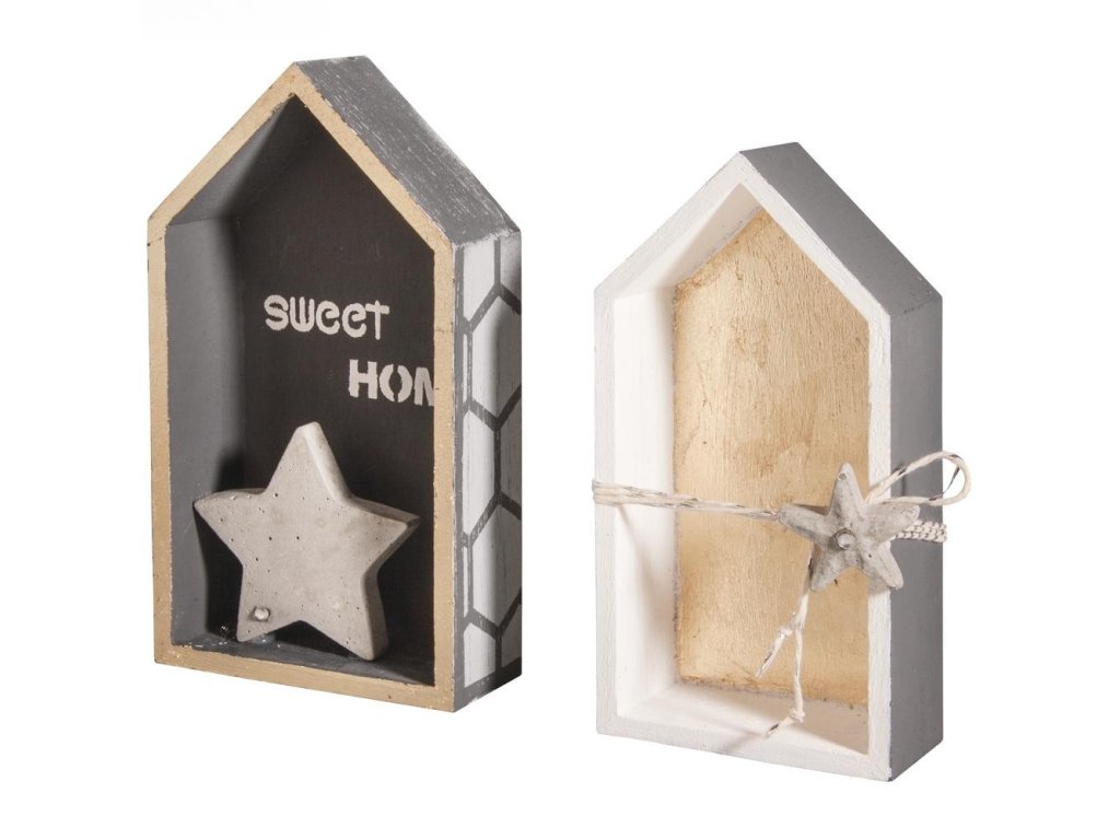 Set 2 kosov lesenih polic v obliki hišice LITTLE HOUSES