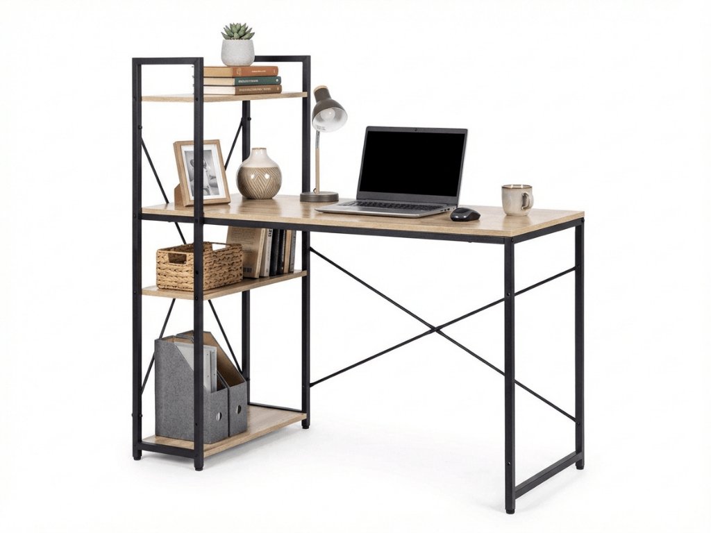 Pisalna miza z regalom LOFTY 120x60 cm, črna / hrastov dekor