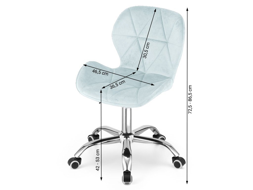 - Stol: Žametna tkanina - svetlo modra, kovina, plast