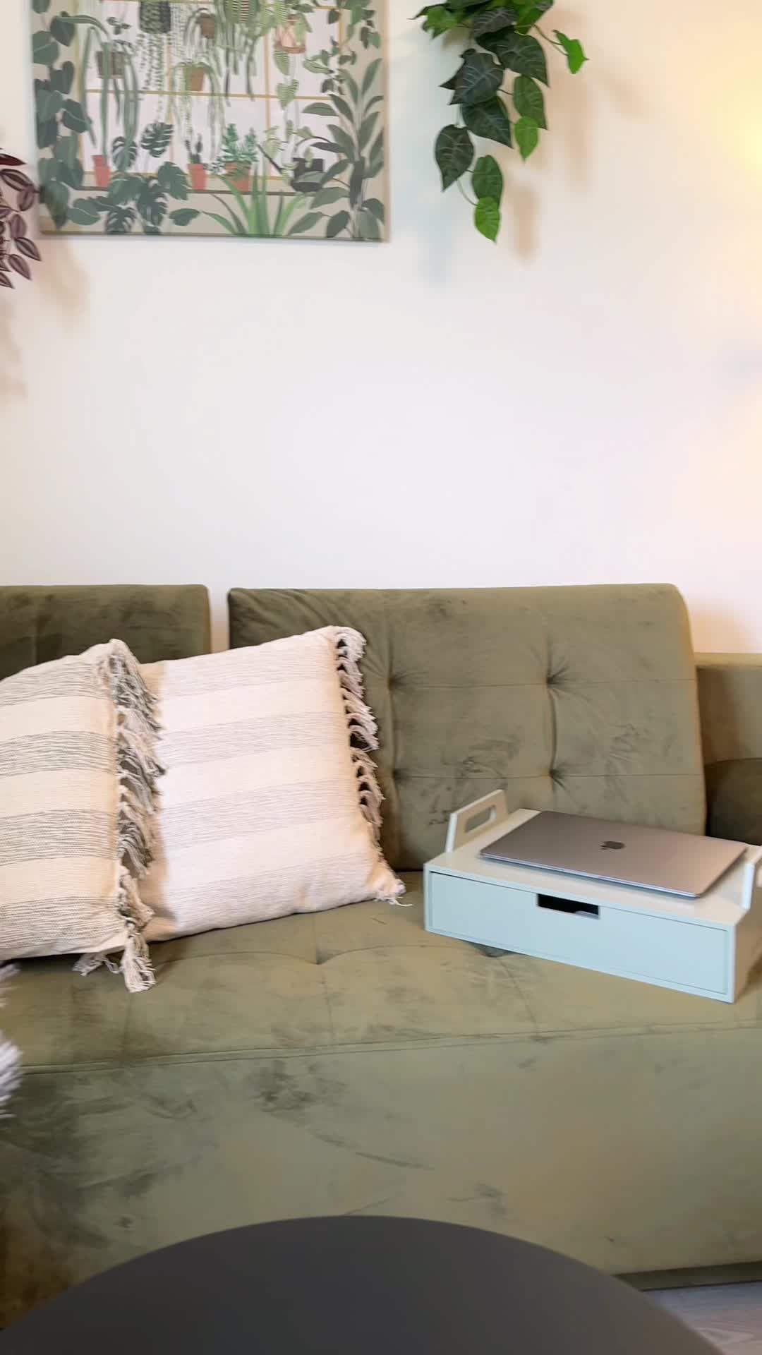 Zeleno-siva lesena mizica za prenosni računalnik GUSTA