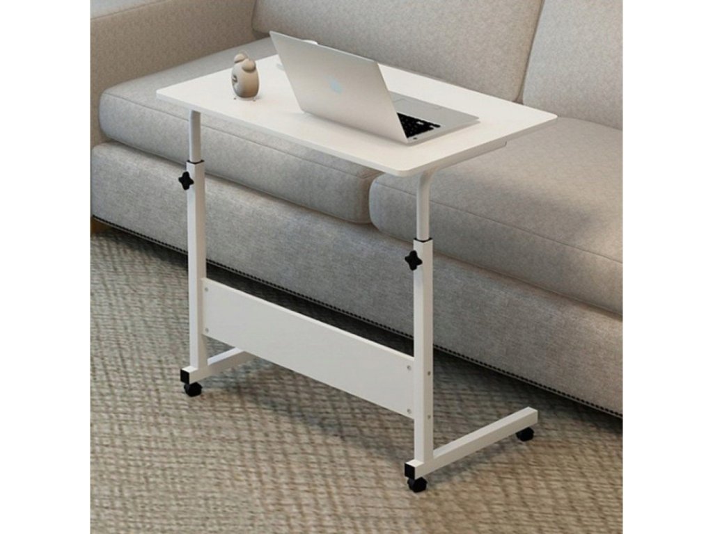 Bele kovinske noge v obliki črke L skupaj z naravno dekorirano zgornjo ploščo ustvarjajo elegantno kombinacijo. Mobilna pisalna mizica ne vključuje predala. Mobilna mizica je primerna tudi za gledanje filmov v postelji ali za starejše osebe.