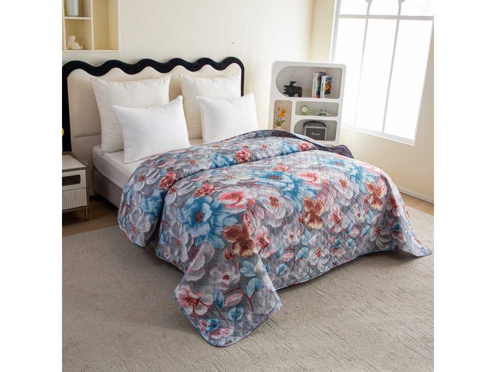 Pregrinjalo za posteljo BLOSSIVA sivo