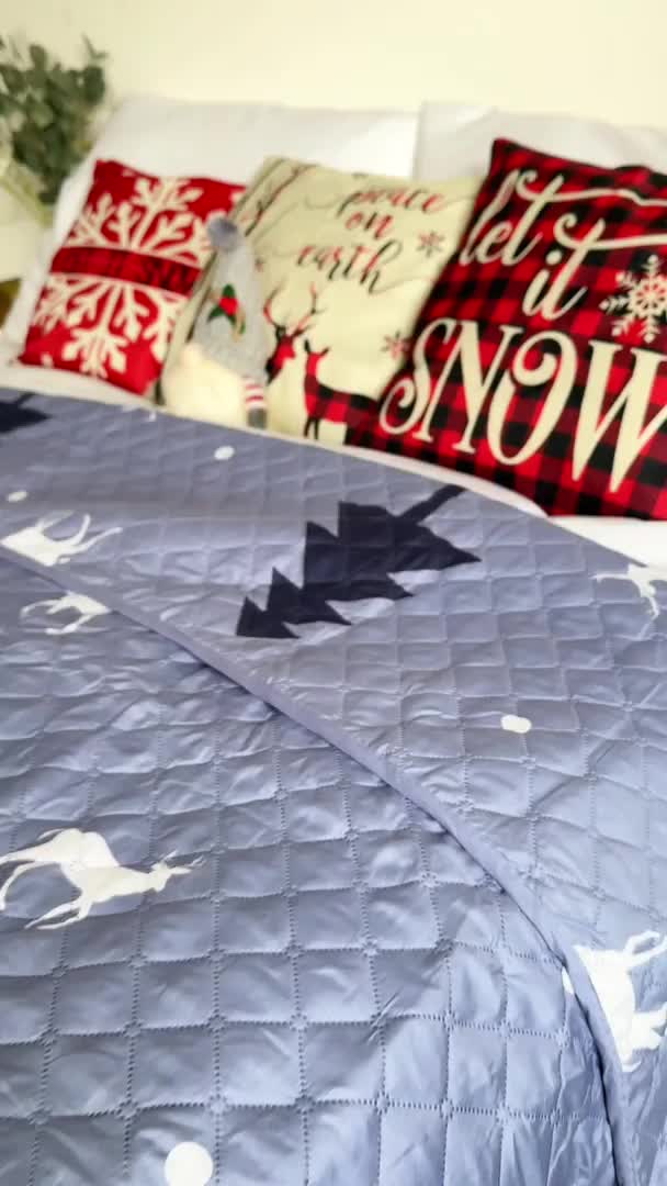 Pregrinjalo za posteljo DEER AND TREE modro-sivo