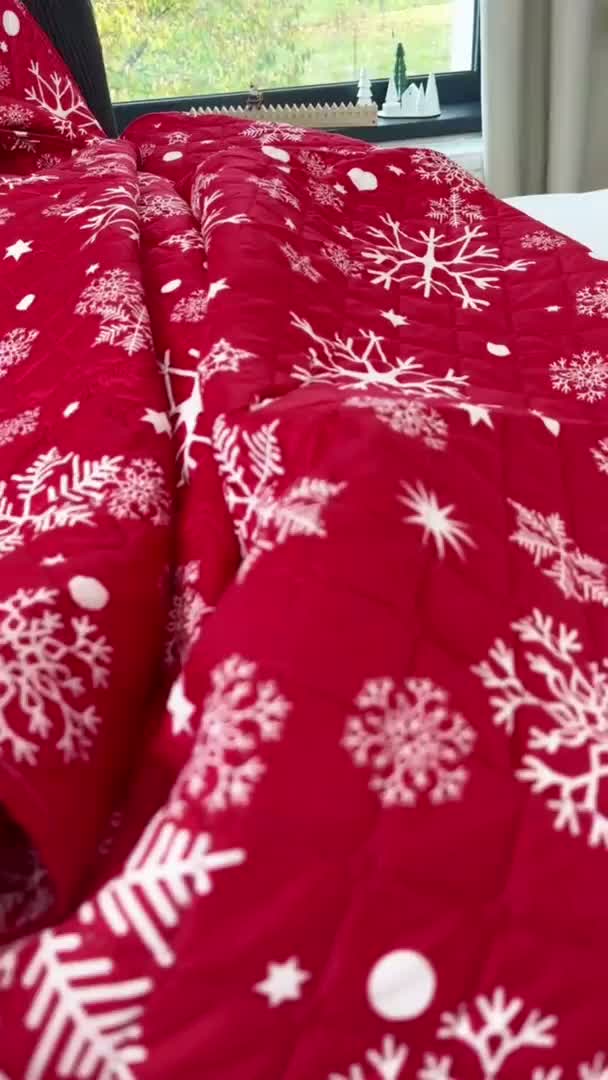Pregrinjalo za posteljo SNOWFALL, rdeče