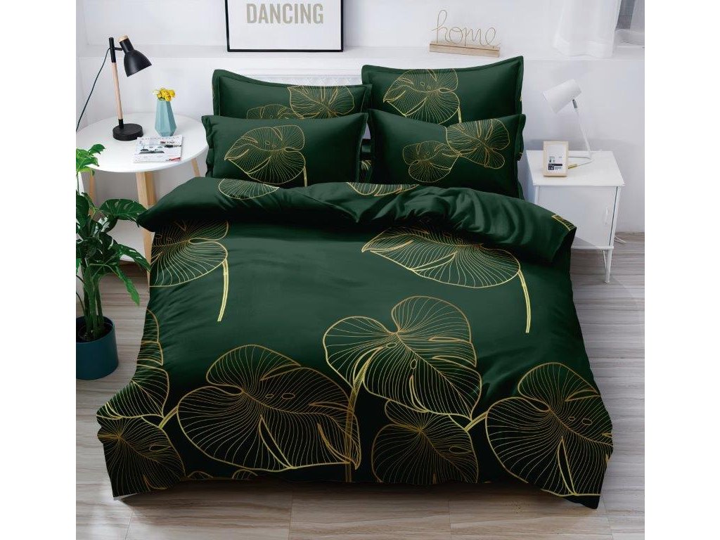 Posteljnina iz mikrovlaken DAMON zelena prinaša v vašo spalnico naravno eleganco in mirno vzdušje. Globok odtenek zelene v kombinaciji z zlatim listnim vzorcem ustvarja moderen in prefinjen dizajn, ki izstopa v vsakem interierju.