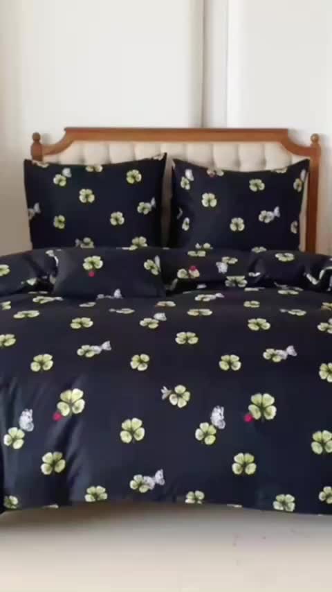 Posteljnina iz mikrovlaken FOUR LEAF CLOVER črna