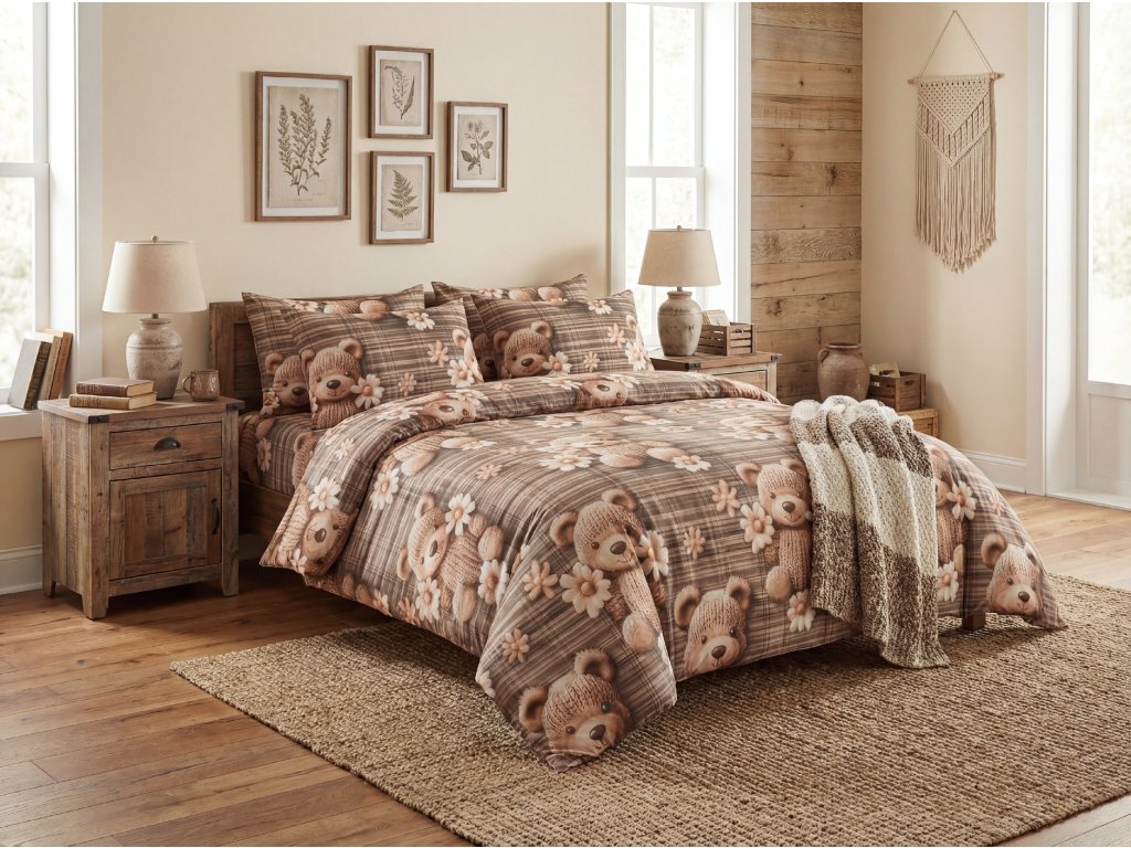 Posteljnina iz mikrovlaken SPRING BEAR rjava