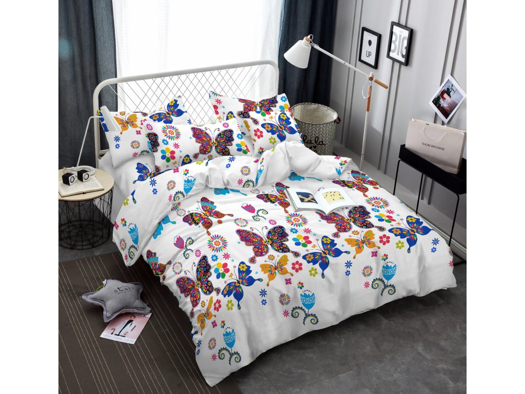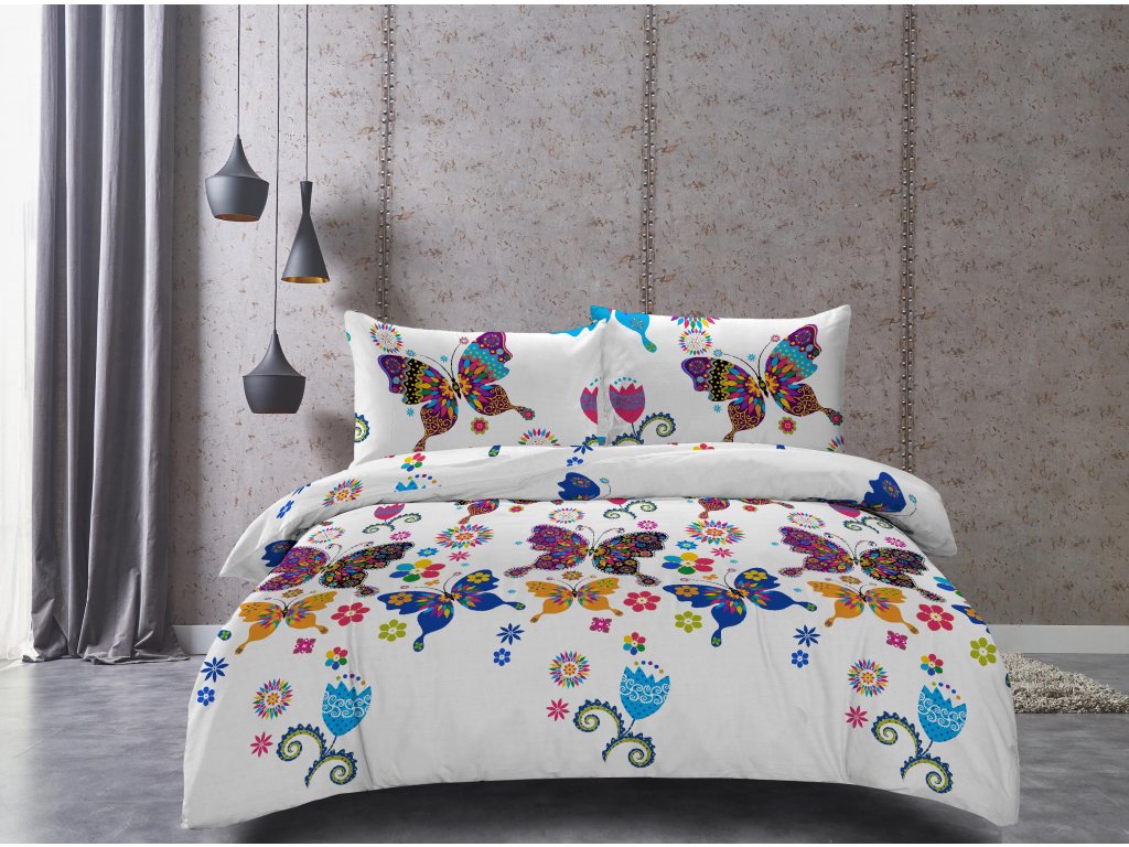 Posteljnina iz mikrovlakna PISANI METULJ bela