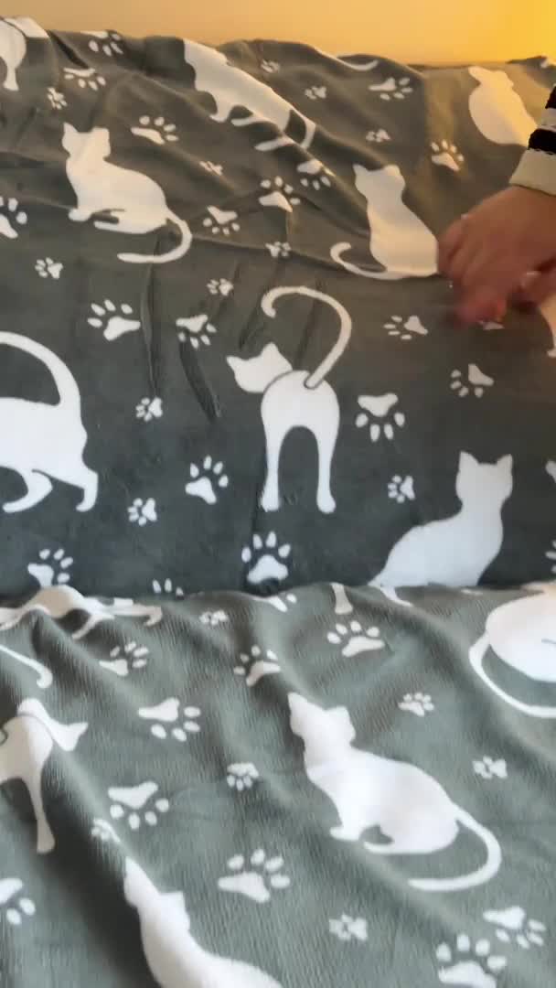 Posteljnina mikropliš BELI MAČKI siva