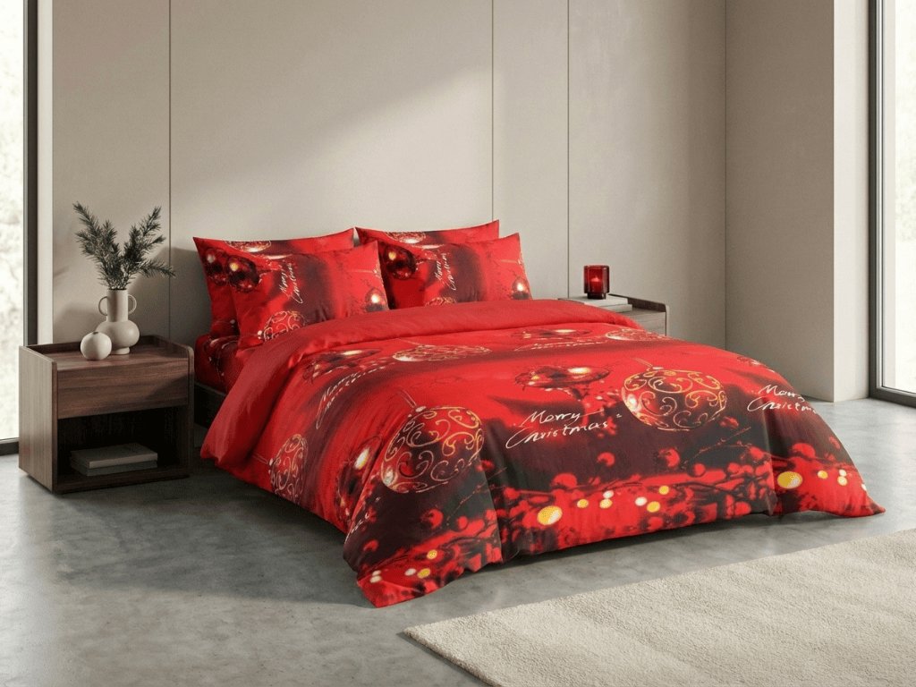 Posteljnina mikropliš MERRY CHRISTMAS rdeča