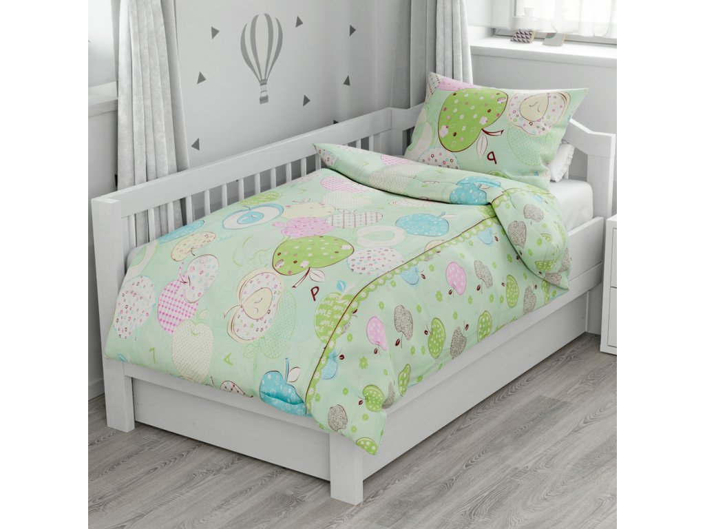 Bombažna posteljnina za posteljico PISANA JABOLKA zelena