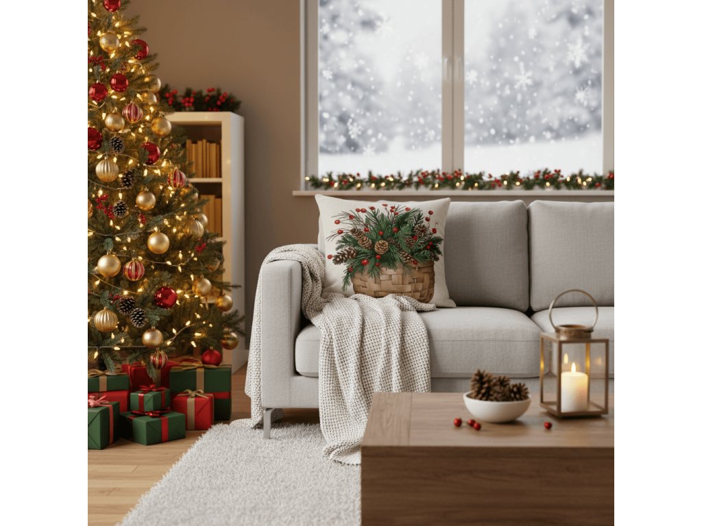 Božična prevleka za blazino FOREST GIFT 45x45 cm, bež